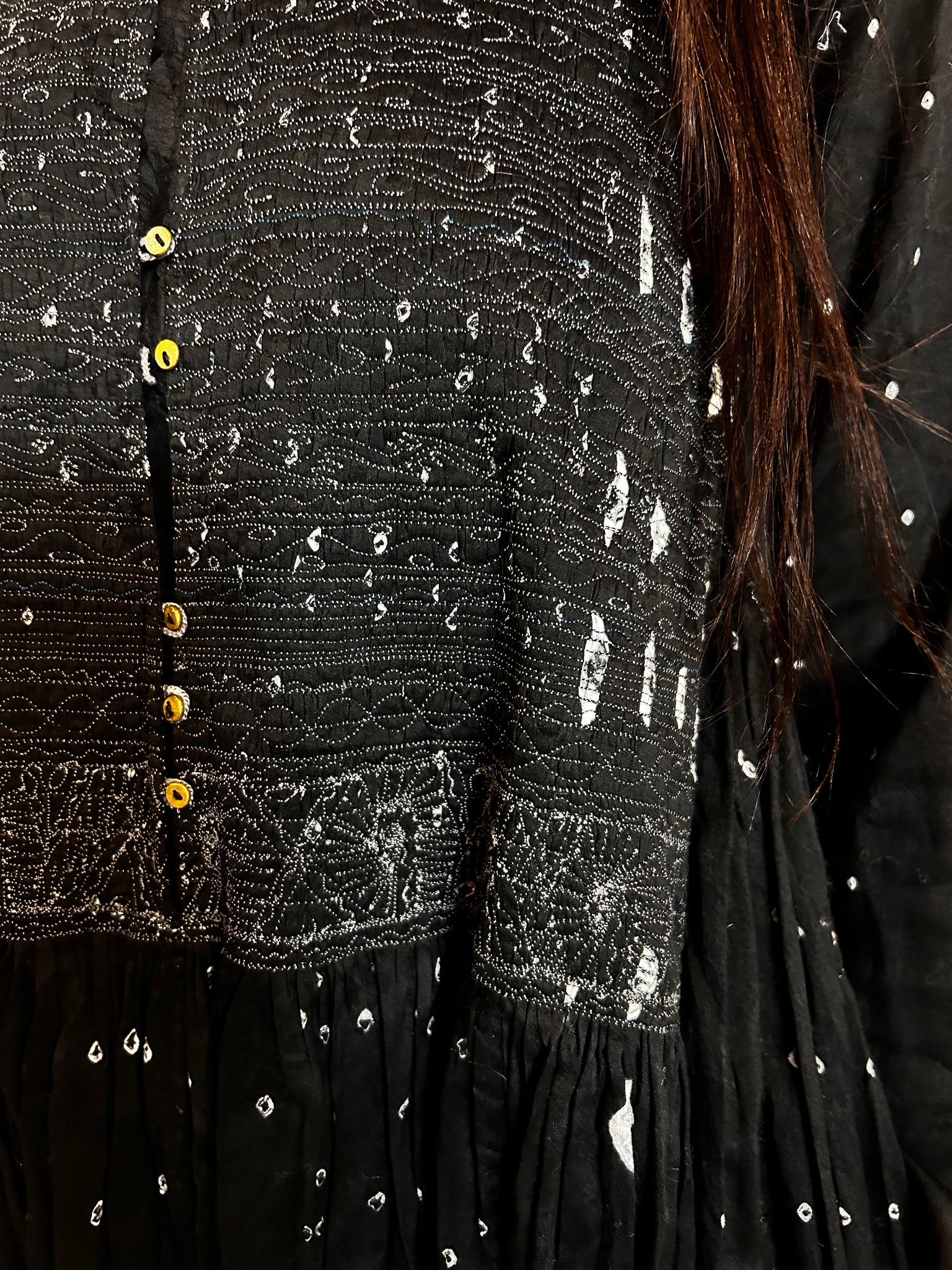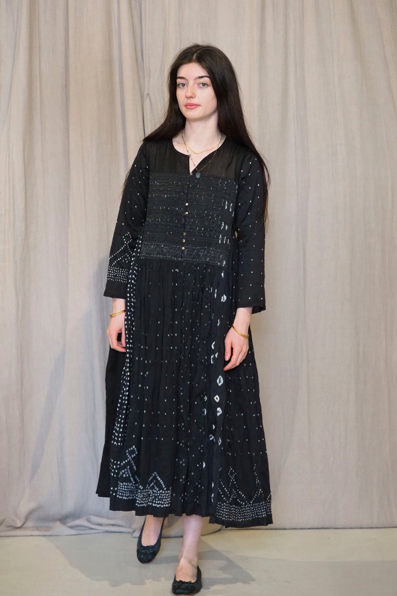 Exquisite hand-loomed, tie-dyed and embroidery detailed dress.